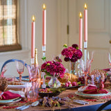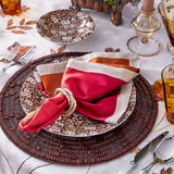 The Dip Dye Napkin features an ombre gradation from cranberry to orange, adding a subtle elegance to the refined linen napkin. This gorgeous rich color combination complements any festive fall table. These napkins are hand dipped and dyed and accented with a luxurious metallic foil border.