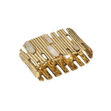 The gold-colored Matrix napkin ring is table jewelry that demands attention. Its elongated cast brass cuff is adorned with hand-attached mother-of-pearl elements. An organic edge treatment creates a captivating high-low effect on the textured border. The luxurious blend of gold-colored metal and mother of pearl, combined with the organic design, makes the Matrix a unique accessory for your table.