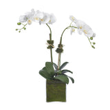 Phalaenopsis orchid, 2 stems, in glass cube.