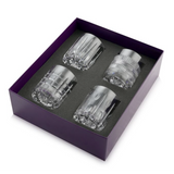 The Skye set of tumblers is a fun combination of cuttings – 4 unique styles to add pizazz to your barware. They come in a handsome William Yeoward Crystal gift box.