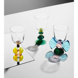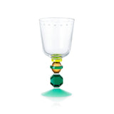 The jewel-like colours and geometric stems of the Mayfair crystal glasses are reminiscent of the abundance and affluent period during the times of the Art Deco era. They are made from hand-cut crystal and glass with a subtle diamond engraving around the rim and an emerald green base. Arrange them as a vibrant and playful contrast to create a dynamic effect.