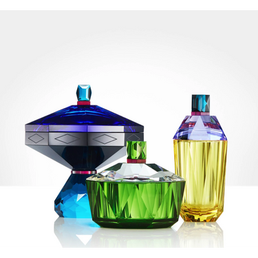 This opulent coloured lidded jar is crafted from crystal and is rendered with an octagonal lid. It will bring any space alive with its bold colour combination. Ideally placed on a dressing table, desk or tabletop, this basin can be used to store jewellery, keys or other small trinkets. You can also mix it with Reflections Copenhagen’s other lavish bonbonnieres or set it on one of our iridescent trays.