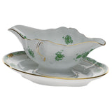 Originally created in 1930 in raspberry coloration for Count Albert Apponyi, the pattern features a center motif of a stylized peony surrounded by a garland of leaves with 24K gold rosettes. It is available in multiple color options.