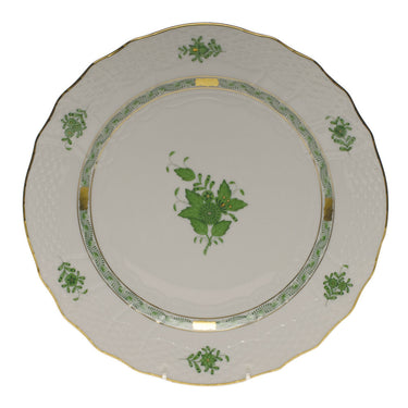 Originally created in 1930 in raspberry coloration for Count Albert Apponyi, the pattern features a center motif of a stylized peony surrounded by a garland of leaves with 24K gold rosettes. It is available in multiple color options.
