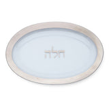 This handmade glass Challah Platter is hand-painted with a wide band of 24k gold or genuine platinum, making for a gorgeous accent when served with a variety of dinnerware styles.