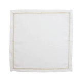 The elegant linen Herringbone Napkin in white with gold and silver embroidery is a classic entertaining staple for the table. It works beautifully in a formal setting or for daily use. It is available in other embroidery combinations to meet different entertaining motifs.