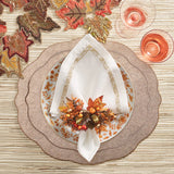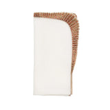 Embark on a journey inspired by Kim's visit to Egypt's pyramids with the refined Nile napkin. Clean lines and simple shapes create order and balance along the scarab-inspired edge. Metallic threads in rich, autumnal hues shimmer like Egyptian beetle wings. Warm earthy tones and detailed stitching infuse a fashion-like quality. Ideal for festive fall tablescapes and elegant gatherings, this embellished napkin adds cultural richness and style.