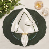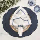 The traditional oval shape gets a modern refresh with the matte faux leather Tailored Placemat. A stylish wavy edge and embroidered tone-on-tone border detailing elevate this faux leather accessory. This hard-backed versatile placemat effortlessly adapts to both dressed-up and more laid-back settings.