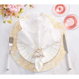 To complement the delicately beaded Tapestry placemats are these 100% linen napkins with eyelet borders on its chevron cut edges.