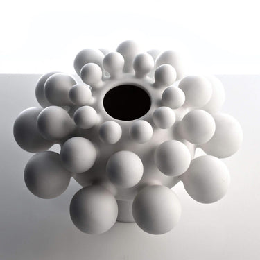Cloud-like, hand-appliqued, porcelain vessels make a bold statement. Klein Reid's sculptural Dome Vase walks an edgy/cuddly line. Perfect empty or brimming with blooms.