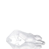 Nimble and sensual, she approaches stealthily, preparing for her attack. Her slim silhouette is enhanced by powerful muscles covered with crystal fur sculpted by thousands of luminous spots. Designed by Marie-Claude Lalique, the Zeila Panther embodies the feline strength and grace.