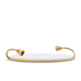 Recalling the grand serving traditions of the early 20th century, the Deco Leaves collection is a richly textured marriage of handcrafted stainless steel and 24K gold-plated accents. This beautiful cheese set is highlighted by a striking juxtaposition of marble and 24k gold plating.