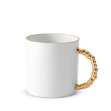 Imaginative in design, this porcelain and gold mug's sculpted handle is modeled after Los Angeles-based artists Simon and Nikolai Haas' iconic monster leg texture.