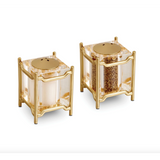 Salt and pepper shakers of distinction, masterfully crafted by hand with 24K gold or platinum plating. Inspired by the first of China's four great dynasties, yet unmistakably modern in sensibility.