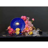 Lapis celebrates the mesmerizing skies above the Mediterranean, an azure of incredible depth in variation and tone. Charger plate made of porcelain with hand-gilded 24K gold accents.