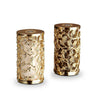 Masterfully crafted by hand with 24K gold plating, Lorél salt and pepper shakers pair beautifully with complementary fold napkin rings for a magnificent table setting. Each set of 2 is presented in a luxury gift box.