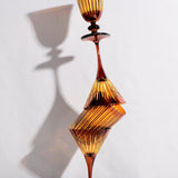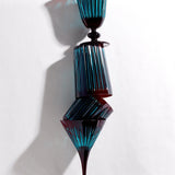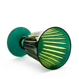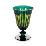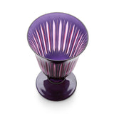 A glassware collection of bold color combinations, hand-cut and decorated to playfully reflect light. Available in Amber, Green, Purple, and Bordeaux.