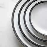 Soie Tressée, French for "Silk Braid," is a modern expression of a timeless classic and offers a contemporary look on an ancient shape. Made of Limoges porcelain, this dinnerware collection is available in white or with the braids beautifully accentuated in hand-gilded 24K gold, platinum, or black.