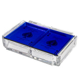 This playing card deck of modern design is handmade in Miami from a single piece of acrylic. All sets come with Bicycle 808 Standard Index playing card decks with blue and red backs. Durable and air cushioned for a great feel no matter what game you play.