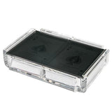 This playing card deck of modern design is handmade in Miami from a single piece of acrylic. All sets come with Bicycle 808 Standard Index playing card decks with blue and red backs. Durable and air cushioned for a great feel no matter what game you play.
