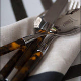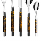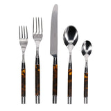 - Includes: salad fork, dinner fork, dinner knife, dinner spoon, dessert spoon