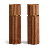 Complement to the Ionic porcelain objects, these salt and pepper mills are hand carved in natural European oak and smoked oak, adorned with handsome brass details, and expertly outfitted with a high-quality metal grinding mechanism.