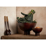 A collection of hand-carved, fine smoked ash bowls inspired by the Alhambra gardens. This pure silhouette is floating on stacked wood pedestal with a handsome brass base. Suitable for food service or as a decorative accent.
