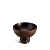 A collection of hand-carved, fine smoked ash bowls inspired by the Alhambra gardens. This pure silhouette is floating on stacked wood pedestal with a handsome brass base. Suitable for food service or as a decorative accent.