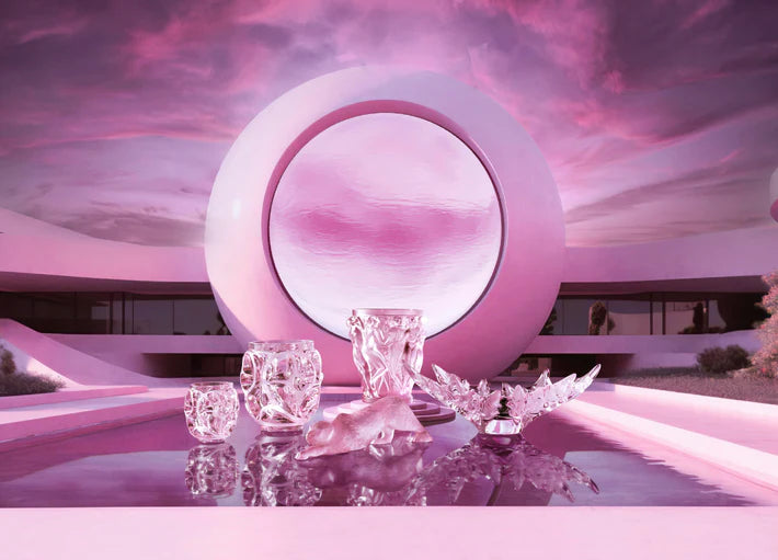 To obtain the perfect shade of pink of the collection Iconics Rose Nebula collection, a luster mist, made from precious metals including yellow gold, is subtly sprayed on. After this delicate, precise application, the piece is annealed in an oven, where the magic happens: the gold particles in the mixture are activated by the heat, and the clear crystal takes on a Vaporous Pink hue, Rose Nebula.