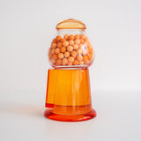 This sleek crystal and glass sculpture evokes the silhouette of a classic gumball machine, filled to the brim with subtly varied monochromatic gumballs. Each vividly colored piece is emblazoned with our signature “In Case of Emergency” typography.
