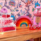 Bring shine and happy vibes to any room with the RAINBOW stand-alone from Tara Wilson Designs. The vibrant colors are mirrored for extra polish and pop!
