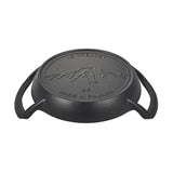 The versatile Alpine Outdoor Skillet is perfect for outdoor cooking over an open flame. It requires no seasoning and has a durable, easy-to-clean enameled cast iron construction. With raised loop handles and a low-profile design, it's easy to maneuver on the grill and fits perfectly on most grills. Enjoy seared steaks, fried eggs, toasted sandwiches, pancakes, and more with this essential skillet.