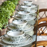 Indulge in the exquisite design of Themis Z's Kyma Charger Plate, handmade with fine porcelain and adorned with a stunning hand-painted pattern in green.