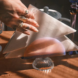 Designed as a sculptural frame for folded linens, this elegant napkin holder is crafted in crystal with clean lines and subtle color accents that echo the quiet sophistication of the Tableau collection.