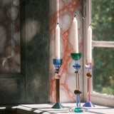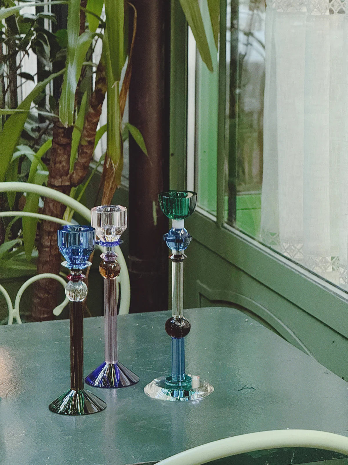 Helene, Valentin, and Rosalin are modern interpretations of the classic candleholder—tall, slim, and strikingly refined. Crafted in a palette of harmonious colors, these multicolored pieces invite playful mixing and matching to create a uniquely vibrant and dynamic tablescape. Their slender silhouettes add vertical grace without overwhelming the setting, offering a contemporary yet timeless accent. Together, they transform any table into a sophisticated composition of light, color, and elegance.