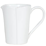 The Lastra White Pitcher is rustic, chic, and sophisticated. An overlapping wooden mold, used for centuries to form cheeses throughout Italy, inspired this collection.