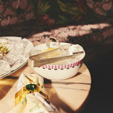 Two bowls that combine past graphics with a contemporary color scheme and Scandinavian flair. These bold pieces can stand alone or be grouped together for an inspiring and modern touch to any dinner table.