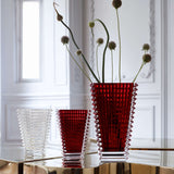 The wavy design of the crystal Eye vase comes from an extraordinary technique: exterior horizontal cuts and interior vertical cuts combine to produce a magic visual effect.