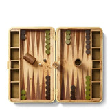 Beautifully presented in a plush velvet box with brass detailing, styled with rounded corners to reflect the soft finish, this backgammon set is ideal for after-dinner games as well as gifting. It has a luxurious contemporary feel, with chocolate and green smooth acrylic tiles and walnut veneer dice holders lined in green faux suede.