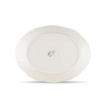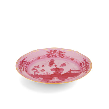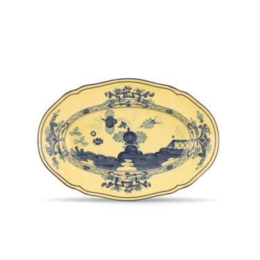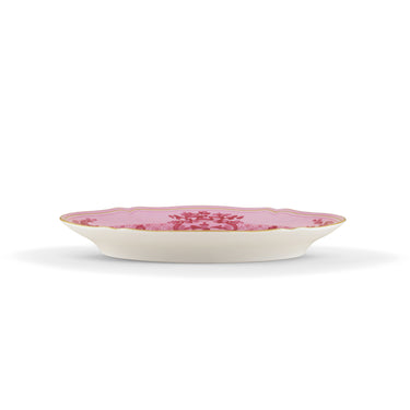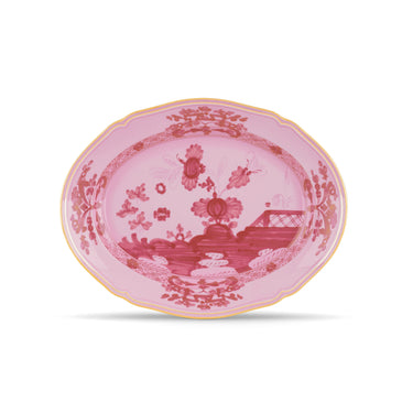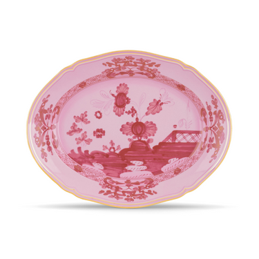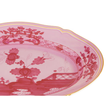 Oval platter in porcelain from the Oriente Italiano Collection. The celebrated carnation motif stands out against the fine porcelain. Distinctive threading traces the contours of the iconic and elegant Antico Doccia shape for a unique and timeless design.