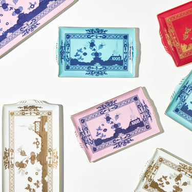 Add elegance to your table with the Oriente Italiano Rectangular Tray in the Iris pattern. Perfect for serving coffee, hors d'oeuvres, desserts, or as a base for table decor. Comes in an exclusive gift box for a thoughtful and unique gift.