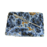 The Borealis collection is entirely handmade in Michael’s studio in the Berkshire hills of Massachusetts. The collection is finished with a reactive glaze that fires slightly differently every time, which is one of the beauties of this collection. It is food-safe and safe to cut on.