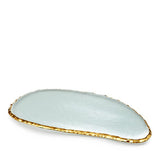 Smoothed faceted metallic edges and textured glass catch the light for show-stopping beauty in the Annieglass Edgey Large Cheese Slab. This handmade glass cheese slab has everything: it is durable and dishwasher safe yet elegant with its gilded asymmetrical edges, making it a favorite serving piece for all occasions from fancy to farmer's market.