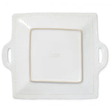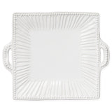 Serve your favorite Italian antipasti on the Incanto Stone White Stripe Square Handled Platter, inspired by the breathtaking and beautiful columns of Palladian villas that line the Brenta River. Handcrafted of stoneware in Veneto.