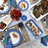 From the Le Panier Collection by Juliska - Inspired by the French basket weave often found in equestrian and nautical traditions, this tray is trimmed with a beautifully hand-painted Delft Blue herringbone band. Ideal for both host and hostess, it can house spectacles on a desktop or display homemade truffles for dessert.