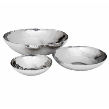 Luna Stainless Round Bowl beautifies any tabletop setting. Available in six sizes for any of your serving needs. From nuts, candies, and dips, to large buffet salads- so many ways to use one. Get a hold on some of the different sizes available for a show-stopping, organic look to fit any occasion.