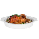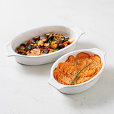 From crumbles to casseroles to cassoulets— this dish is designed for oven-to-table baking at its finest. With its gleaming whitewash glaze and trademark texture that evokes rumpled linen, this oval baker is modern, timeless, and simply beautiful by design.
