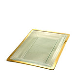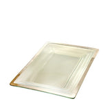 The generously large rectangular Annieglass Roman Antique Buffet Server is a stunning serving piece that belongs in every home. Simplistically elegant, with a slightly recessed clear glass base and 24k gold or genuine platinum hand-painted trim, use the Annieglass Roman Antique Buffet Server for everything from special holiday meals to everyday dinners, or leave out to admire year-round as a stunning centerpiece.