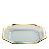 The Annieglass Roman Antique Steak Platter will make a dramatic statement at your next family gathering or dinner party. Styled in simplistic elegance with a clear glass base and hand-painted band of 24k gold or genuine platinum, use this serving platter to display for your most impressive dishes.