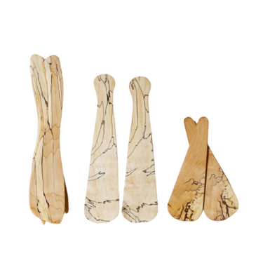 Toss leafy greens with a well-crafted, artisanal flair. These hand-made salad tossers have an elegant and slightly bowed shape. They range in size from 9” to 13.5”, are sustainably sourced, upcycled, and handcrafted in New England.